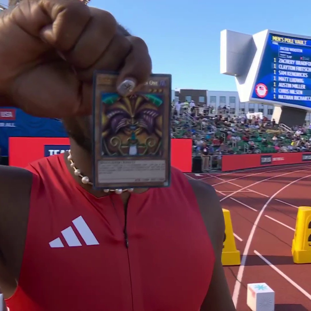 ライルズが遊戯王カードを使うきっかけの一つは、アメリカの砲丸投げ選手チェイス・イーリーとの賭けでした。ライルズとイーリーは、競技前に何かユニークなことをするという挑戦を互いに課していました。